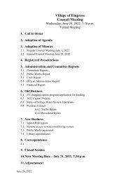 Posted on July 20, 2022 under: AnnouncementsA Regular Council Meeting for the Village of Empress will be by Zoom and will start at 7:30 pm, Thursday, July 21, 2022.
