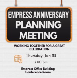 Thur, Jan. 25: Power Outage & Empress Anniversary Meeting