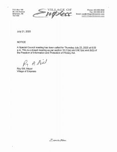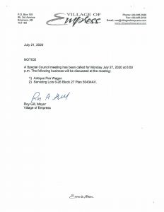 Posted on May 11, 2020 under: UncategorizedSpecial Meting of Council to be held May 12, 2020 6 pm in the Village Office regarding 439- 1 Ave. East rental offers.
