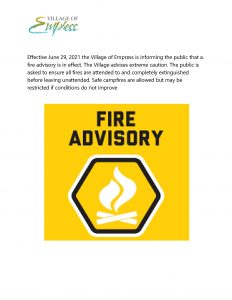 Posted on June 2, 2021 under: UncategorizedPlease take note that the combined tax/assessment notices have been mailed. Final date for mailing a complaint for assessment is June 29th. Taxes are due June 30th, after which a 10% penalty will be applied. Should you wish to file an assessment complaint, taxes must still be paid by penalty date to avoid a penalty. If you have not recieved your notice, please call the office at (403) 565-3938 or email voe14@villageofempress.com.