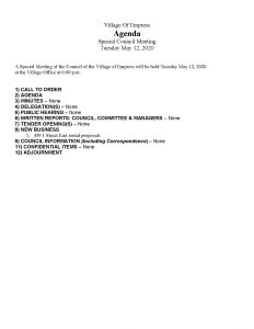Posted on May 25, 2020 under: UncategorizedSpecial Council meeting May 28, 2020 6:00 p.m. Click on the image to enlarge.